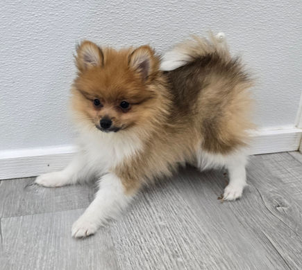 I am a female, orange sable with white markings, Pomeranian. My father weighs 6lbs and my mother weighs 8lbs. I am microchipped, registerable with the America's Pet Registry, and comes with a four generation pedigree. My breeder is USDA Licensed and State Licensed.