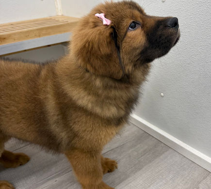 I am a female, red sable, Tibetan Mastiff. My father weighs 160lbs and my mother weighs 135lbs. I am microchipped, registerable with the American Kennel Club, and come with a four generation pedigree with 4 Champions. My breeder is a Hobby Breeder.
